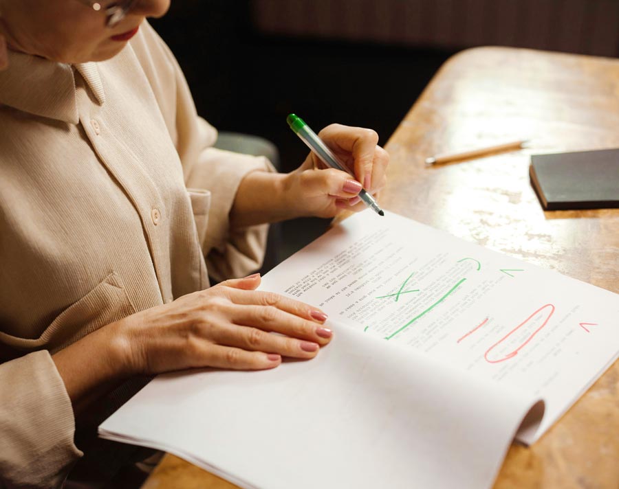 Correction experte de vos documents existants (grammaire, orthographe, vocabulaire technique, mise en page).